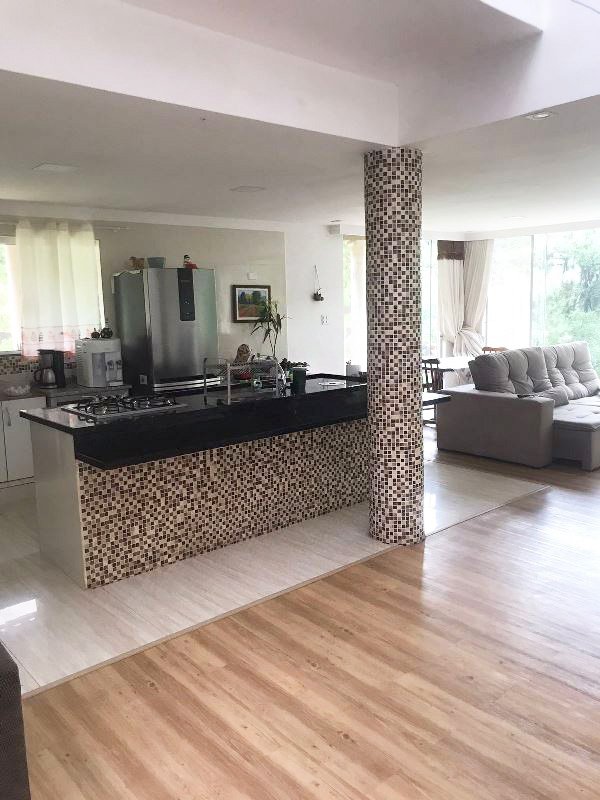 São 3 dormitórios, sendo a principal uma suíte com closet, banheira, e sacada. No térreo, extensa sala de estar e jantar integradas com cozinha e vista exuberante, através de grandes painéis de vidro da sala, direcionado para o verde da floresta, também conta com banheiro e lavanderia.